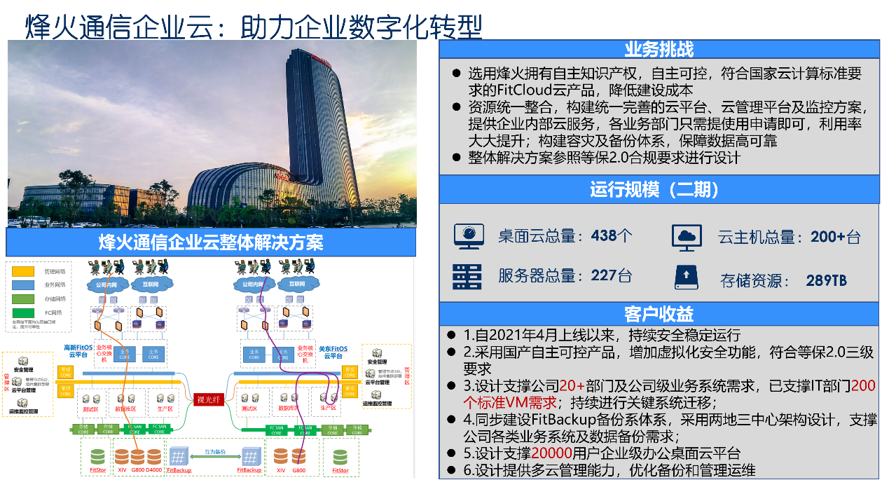 烽火通信科技股份有限公司是國際知名的信息通信網(wǎng)絡(luò)產(chǎn)品與解決方案提供商,國家科技部認定的國內(nèi)光通信領(lǐng)域“863”計劃成果產(chǎn)業(yè)化基地和創(chuàng)新型企業(yè),烽火通信是信息化建設(shè)領(lǐng)域的國家隊。烽火通信企業(yè)云依據(jù)企業(yè)“一盤棋”思路,按照“統(tǒng)一規(guī)劃、分級建設(shè)、物理分散、邏輯集中”原則進行整體規(guī)劃,構(gòu)建烽火“一朵云”。整體建設(shè)采用烽火FitCloud全棧云解決方案,按照統(tǒng)一門戶、統(tǒng)一服務(wù)、管理變革、價值提升、高效運營、智能運維、彈性伸縮、異構(gòu)兼容的目標,打造數(shù)智“一朵云”。