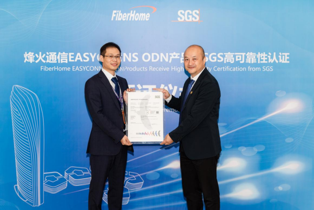 2022年9月20日,國際公認的測試、檢驗和認證機構(gòu)SGS通標標準技術(shù)服務(wù)有限公司(以下簡稱“SGS”)向烽火通信科技股份有限公司(以下簡稱“烽火通信”)正式頒發(fā)全球首張無源光纖網(wǎng)絡(luò)預(yù)連接產(chǎn)品高可靠性認證證書,意味著烽火通信新一代ODN無源光纖網(wǎng)絡(luò)產(chǎn)品,在品質(zhì)、可靠等方面均達到國際領(lǐng)先水平。