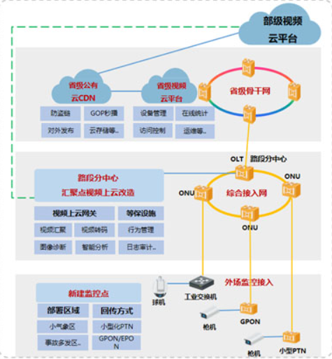 烽火利用自身優(yōu)勢和多年的行業(yè)積累,推出了針對視頻云聯(lián)網(wǎng)工程的一攬子解決方案,涵蓋省級視頻云平臺、路段視頻上云匯聚以及視頻傳輸通信網(wǎng)絡(luò)改造方案。