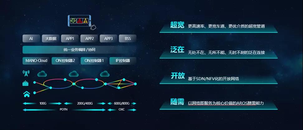 烽火通過(guò)多年的技術(shù)積累和沉淀,定義了新一代光網(wǎng)-智能光網(wǎng)“泛在、超寬、開(kāi)放、隨需”的本質(zhì)特征。