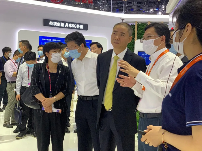 開展首日,工信部副部長辛國斌一行蒞臨中國信科展臺,中國信科集團副總經(jīng)理戈俊全程陪同,分別從“連接的基礎(chǔ)”、“連接的應(yīng)用”,以及中國信科在5G及其后續(xù)演進三個方面,匯報了中國信科在智慧光網(wǎng)、5G商用、數(shù)據(jù)中心、智慧城市等方面如何讓客戶“建得更安心”、“用得更舒心”、“發(fā)展有信心”,并得到了辛國斌副部長一行的充分肯定。