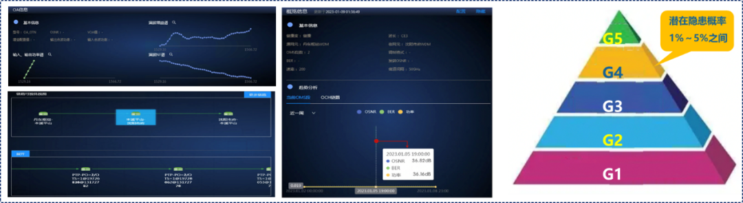 設(shè)計新型五級量化分類方案,細(xì)粒度量化評定光網(wǎng)傳輸質(zhì)量潛在隱患風(fēng)險概率,支持光網(wǎng)傳輸質(zhì)量評估指標(biāo)多維度可視化呈現(xiàn),實現(xiàn)時序回放和關(guān)聯(lián)預(yù)測功能,為自智網(wǎng)絡(luò)L4/L5能力實現(xiàn)提供決策基礎(chǔ)。