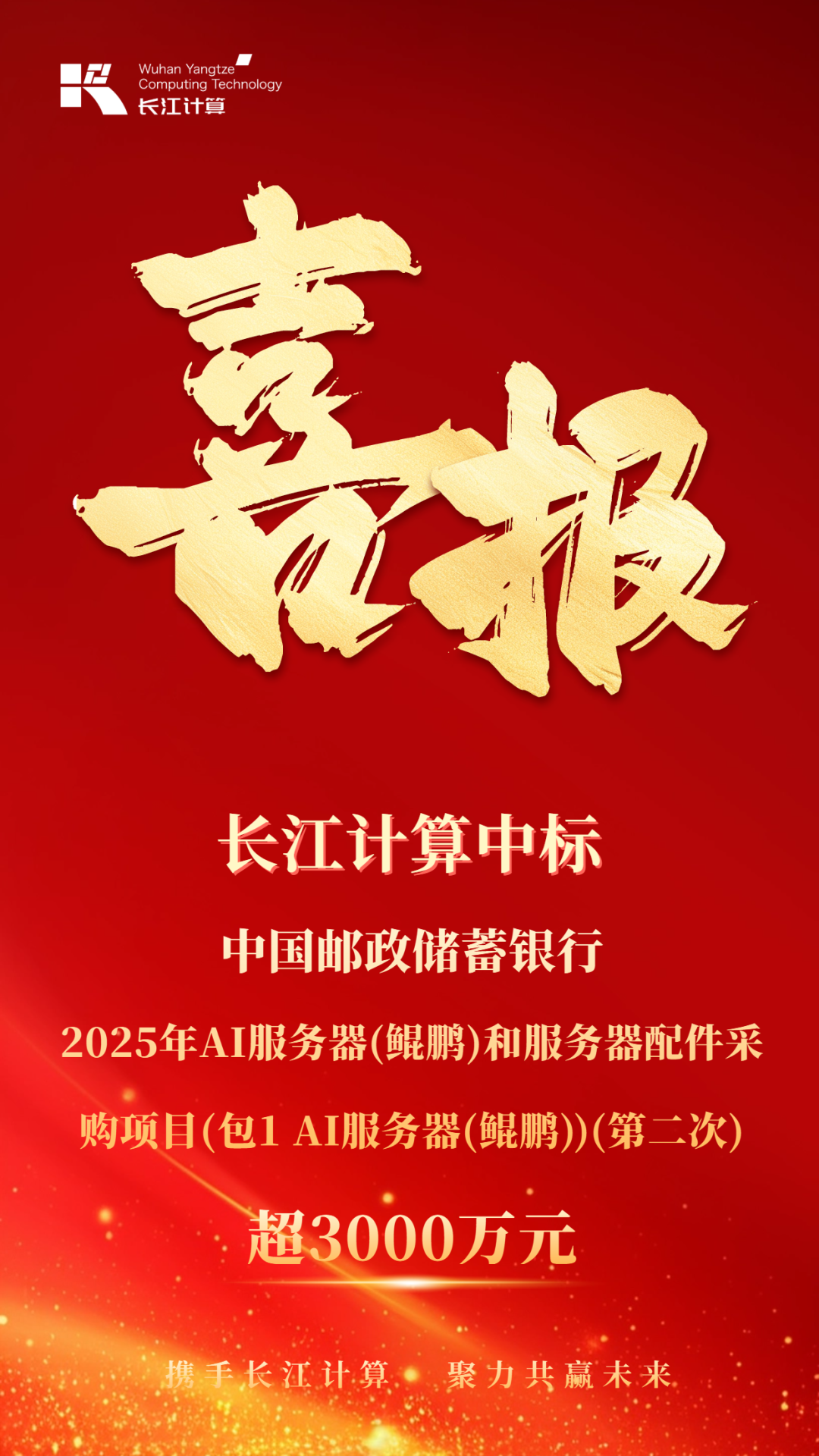 日前,中國郵政儲蓄銀行2025年AI服務(wù)器(鯤鵬)和服務(wù)器配件采購項(xiàng)目(包1 AI服務(wù)器(鯤鵬))(第二次)結(jié)果正式揭曉,烽火通信旗下長江計算憑借硬核技術(shù)實(shí)力、高可靠產(chǎn)品性能及深度貼合金融場景的解決方案,以第二份額成功中標(biāo),中標(biāo)金額超3000萬元。此次中標(biāo)既是頭部金融機(jī)構(gòu)對長江計算綜合實(shí)力的高度認(rèn)可,同時也標(biāo)志著公司在金融AI算力領(lǐng)域的戰(zhàn)略地位得到進(jìn)一步鞏固。